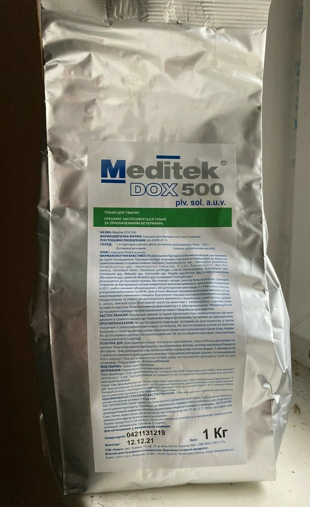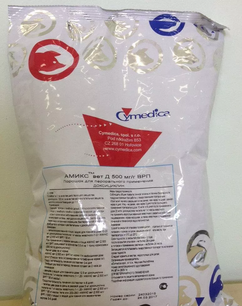 Доксицилина гиклат 50% для лечения телят, свиней и сельскохозяйственной птицы при болезнях бактериальной этиологии. ( Чешская Республика).