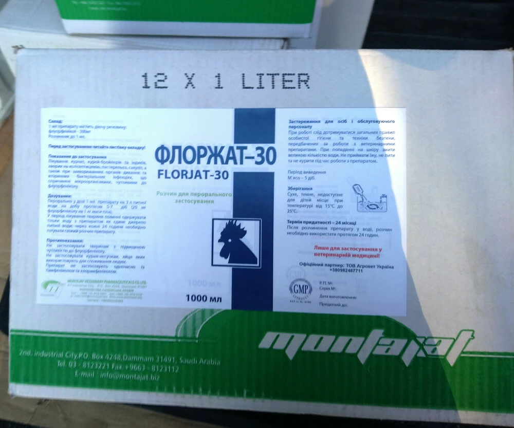 Флоржат-30, 1л (флорфенікол 30%), для птиці