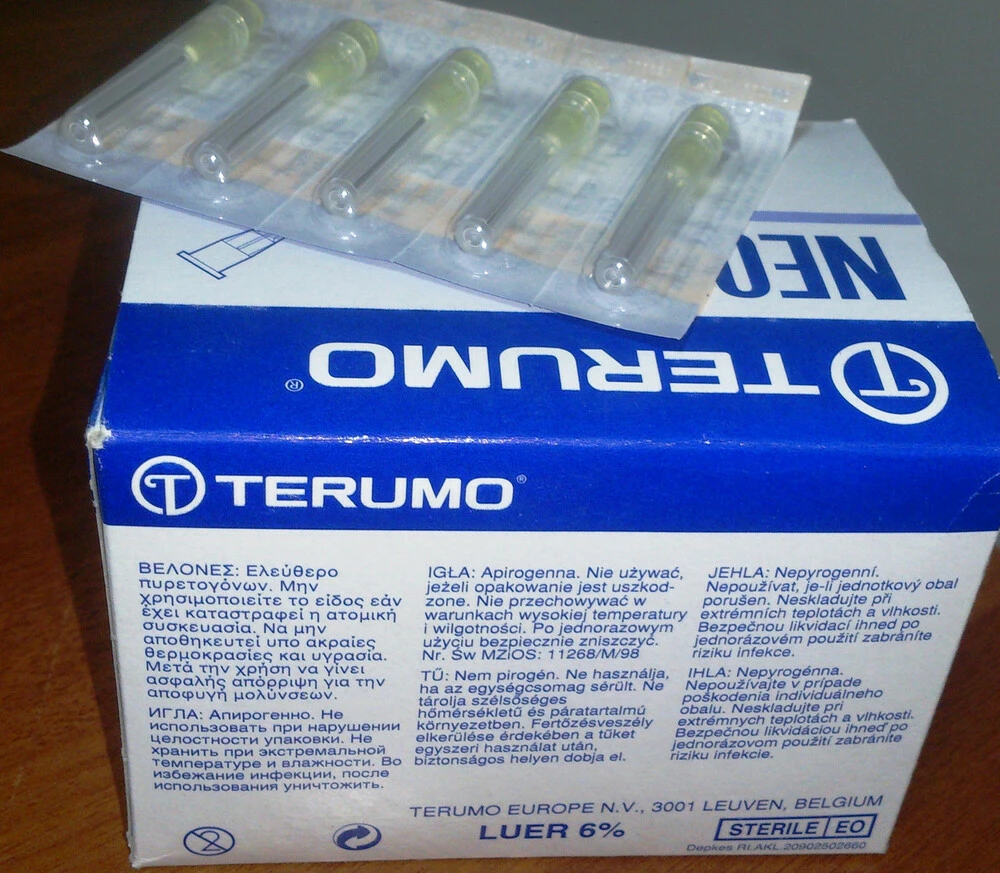 соприкосновении с одноразовыми иглами Terumo остаются целыми и