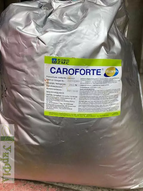 Карофорте жовтий 10%, який містить 10% ксантофілів (9,5% лютеїну та 0,5% зеаксантину), екстрагованих з квітів чорнобривців. Жовті лютеїн і зеаксантин із Карофорте, впливають на важливі життєві процеси в організмі сільськогосподарськоі птиці, мають провітамінну активність, стимулюють імунітет і життєздатність птиці, її стресостійкість, підвищують фертильність, є природними антиоксидантами.