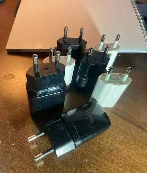 Тип роз'єму - USB, потужність - 5V, зарядка- від мережі, 50/60 Гц, підходить для телефона/смартофона, б/у робочі.