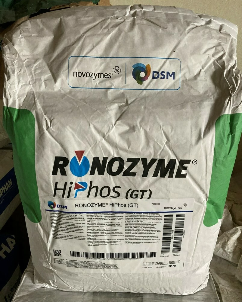 Спецификация: Ронозим ХайФос (M) содержит термостабильную фитазу, не рекомендуется подвергать термической обработке при температуре выше 80°С, с активностью не менее 50000 ед/г, полученную глубинным культивированием штамма-продуцента Aspergillusoryzae, а также сульфат натрия – 58,75%, каолин – 9%, пшеничную муку – 7%, декстрин – 5%, растительное масло – 5%, кукурузный сироп – 2%, целлюлозу – 4%, ацетат цинка – 1%, тиосульфат натрия – 0,25%.