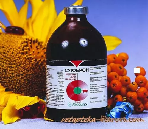 Фармакологічні властивості: Суіферон – комплексний препарат, який поповнює запаси заліза, активізує процеси кровотворення, підвищує вміст гемоглобіну в еритроцитах. Залізо через специфічні рецептори на мембранах проліферуючих еритроїдних клітин надходить всередину клітини. Нормалізація процесів кровотворення сприяє підвищенню резистентності організму. Із місця ін’єкції декстран заліза всмоктується в кров, депонується в клітинах печінки, ретикулоендотеліальної системи, м’язової тканини і поступово витрачається для синтезу гемоглобіну. Основна частина заліза абсорбується протягом 72 годин, решта – поступово вивільняється у наступні 3-4 тижні. Мікроелементи і вітаміни позитивно впливають на засвоєння організмом заліза та регулюють обмін речовин. Білки плазми крові свиней (насамперед, іммуноглобуліни) сприяють розвитку пасивного імунітету та неспецифічної резистентності організму.