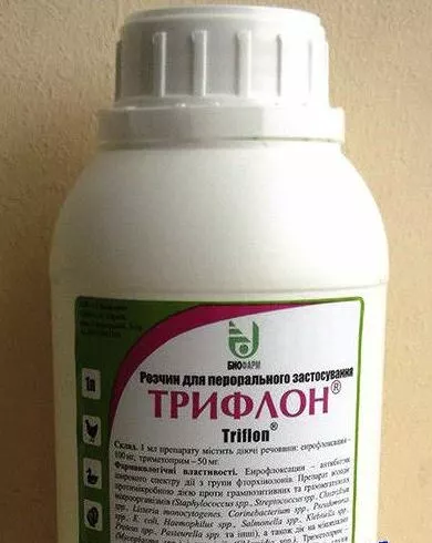 Препарат Трифлон™ применяют для лечения инфекционных заболеваний птицы, обусловленных бактериальной микрофлорой, чувствительной к энрофлоксацину и триметоприму: колиинфекция, сальмонеллез, некротический энтерит, стрептококкоз, гемофилез, микоплазмоз и прочие.